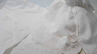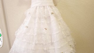 カラーのドレスとタキシードをミニチュアドレスやベビードレスに