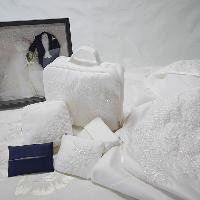 ウェディングドレスとタキシードでフレーム型のミニチュアドレスや
