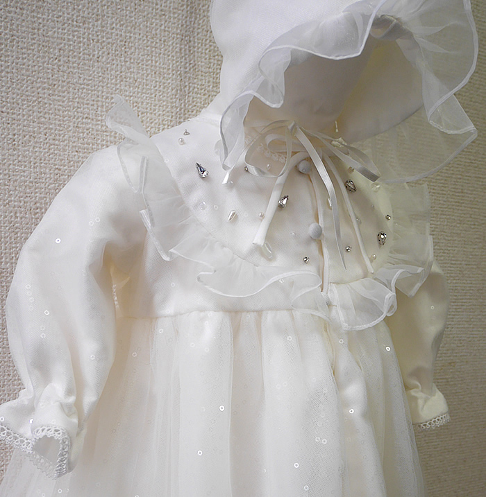 ウェディングドレスとベールをベビードレスにリメイクしました。