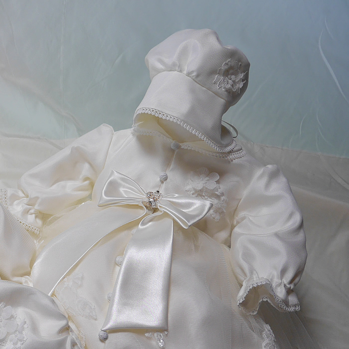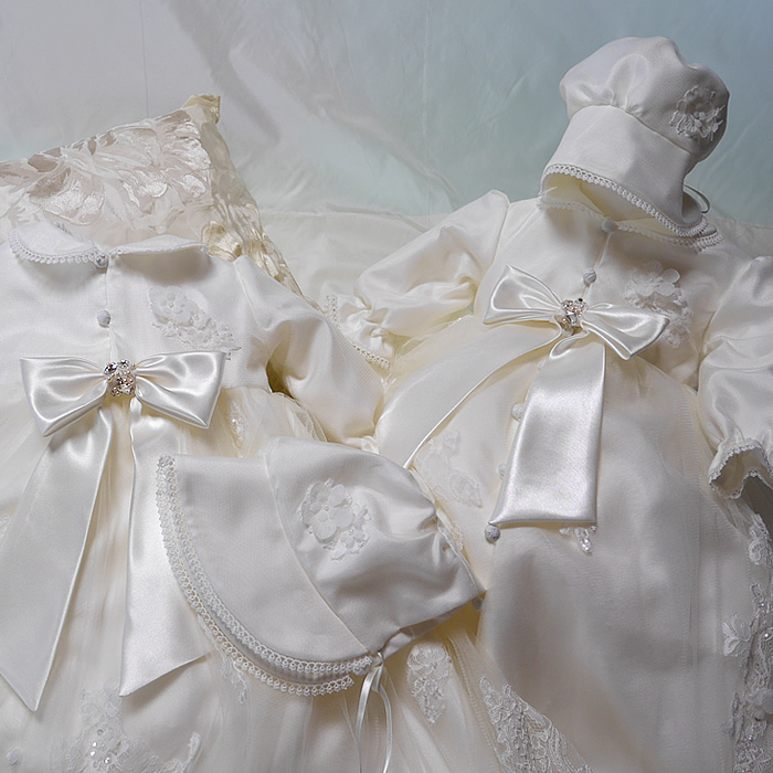 ウェディングドレスからベビードレスにリメイクしました。