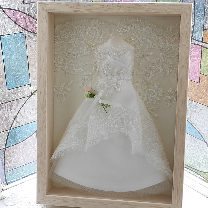 ウェディングドレスをミニチュアドレスのフレームと