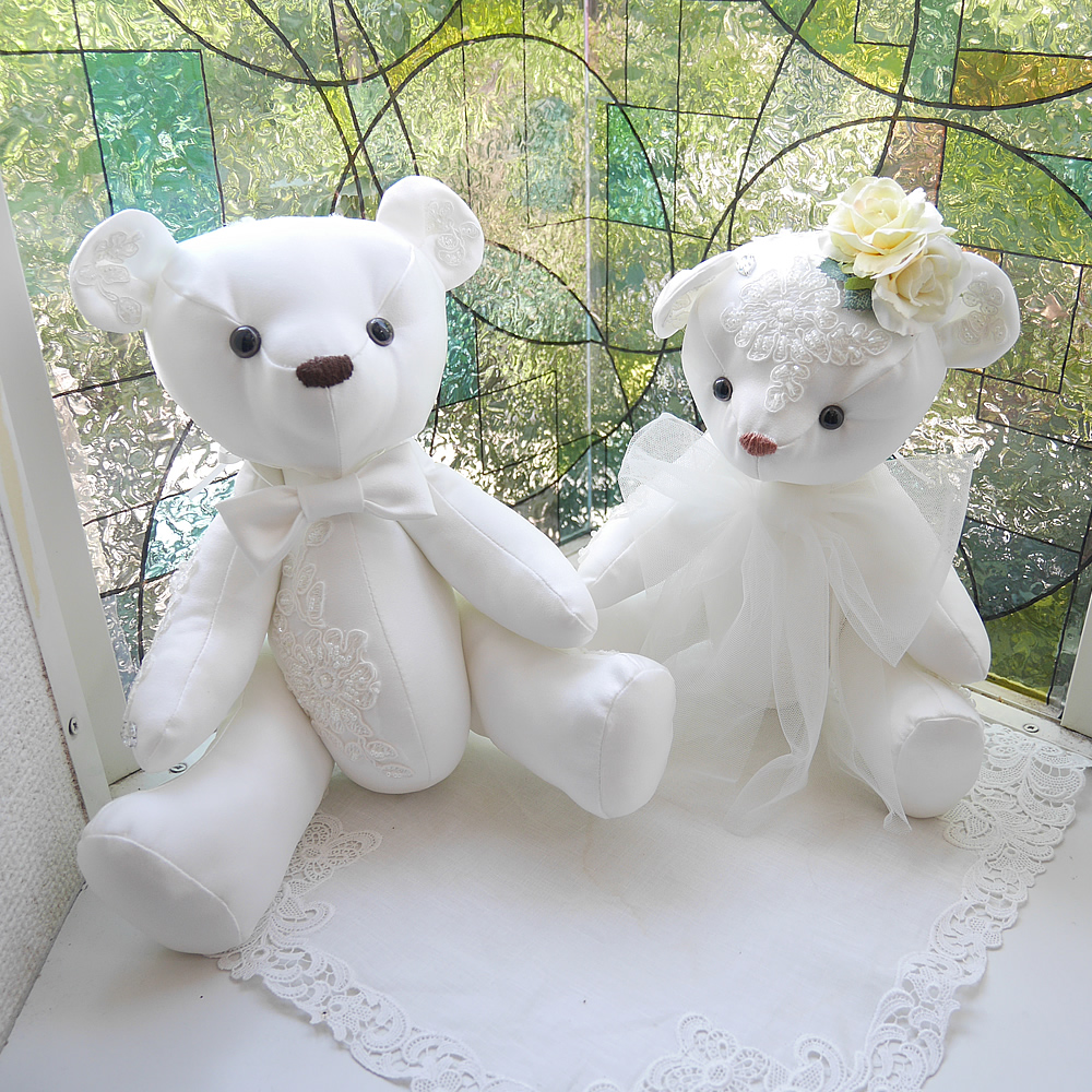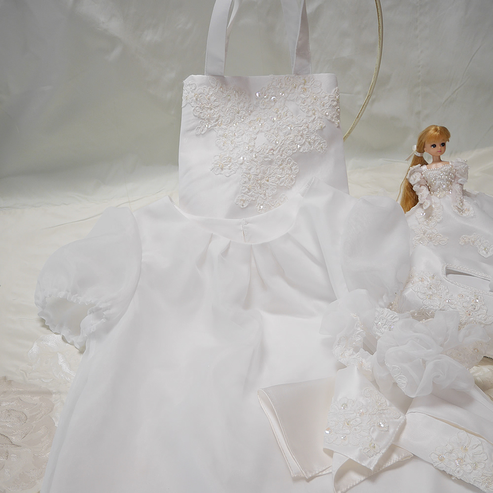 ドレスはサテン生地はもちろん、レースやビジューを使って