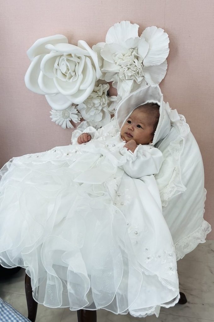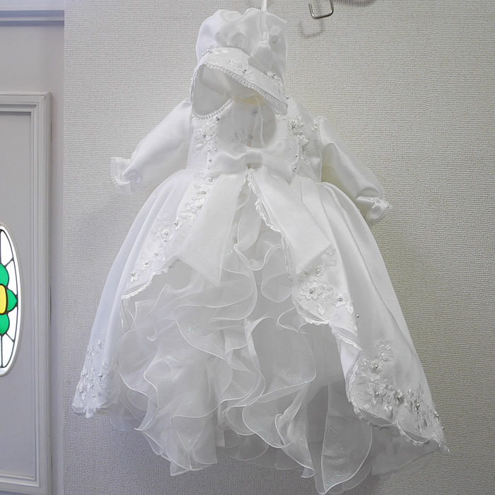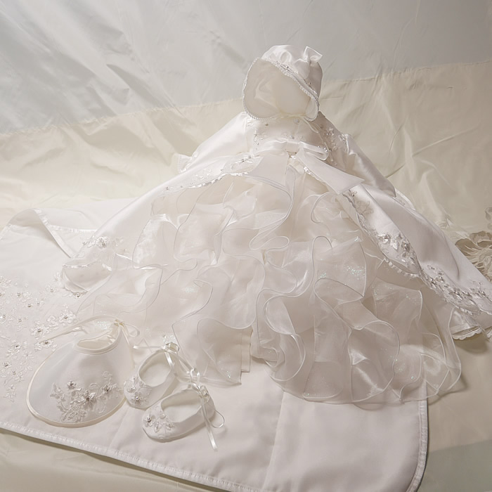 ウェディングドレスからお宮参りセットにリメイクしました。