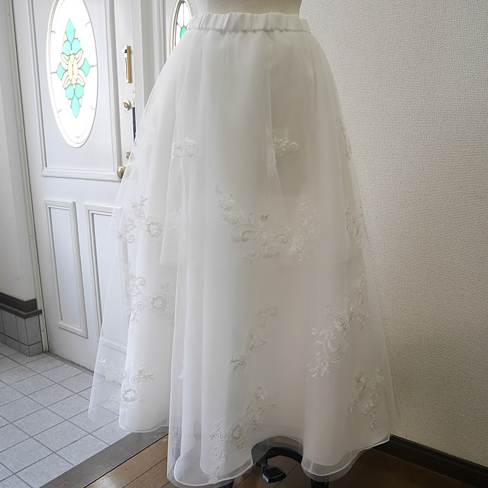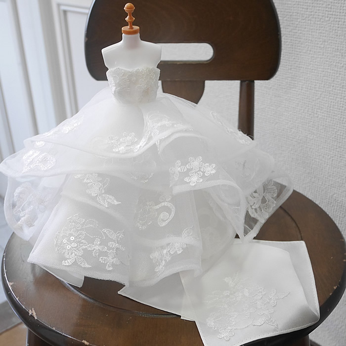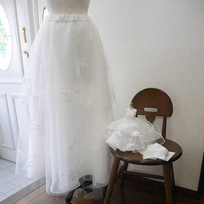 チュールスカートのレースはドレスから丁寧に取ってバランス良く配置し、