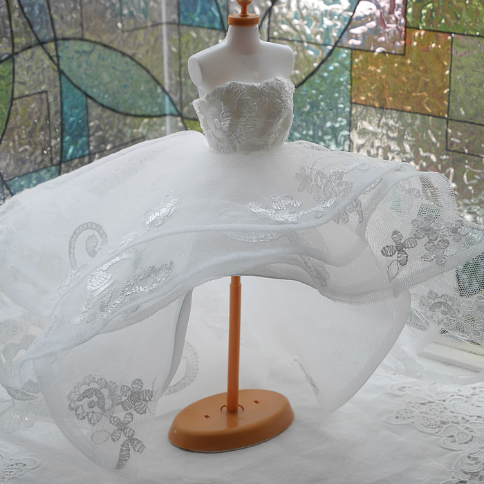 ミニチュアドレスはミニ丈にもなるアレンジを元ドレスと同じように加えました。