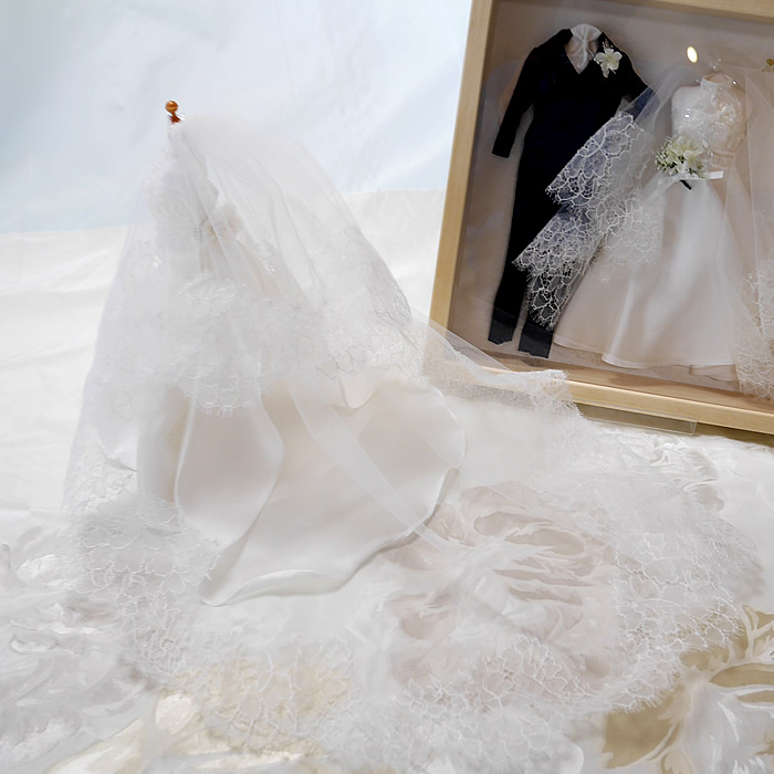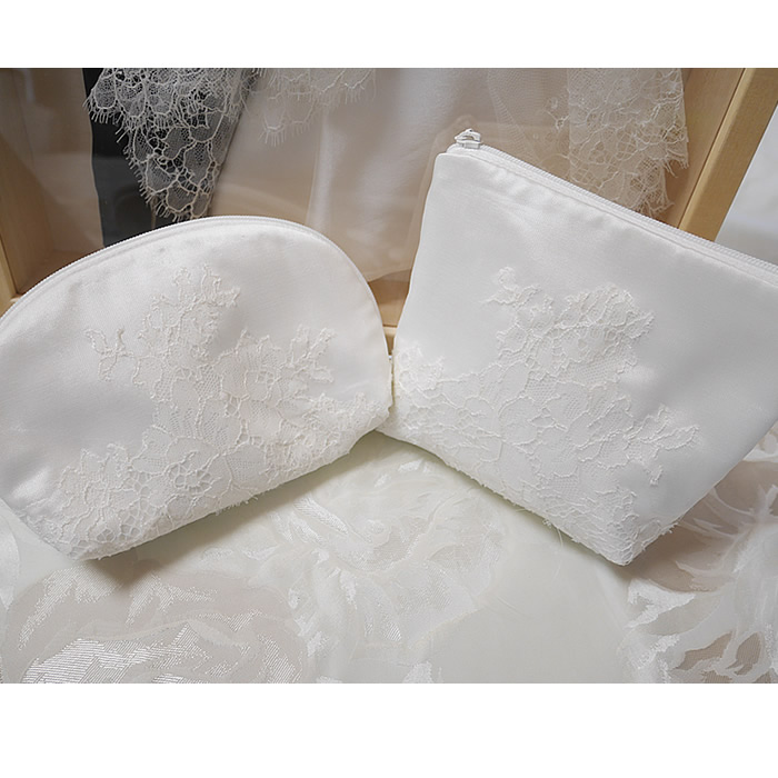 ポーチはシンプルなデザインにベールのレースをあしらいました。