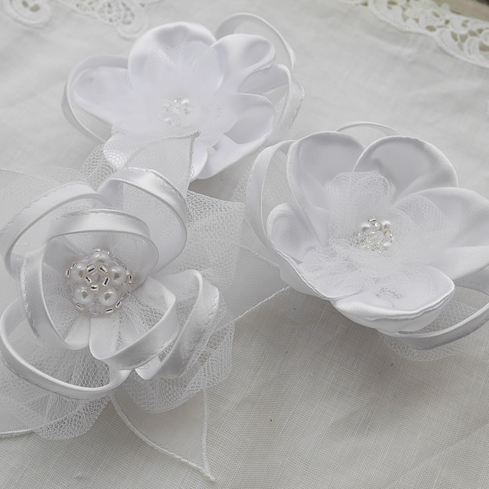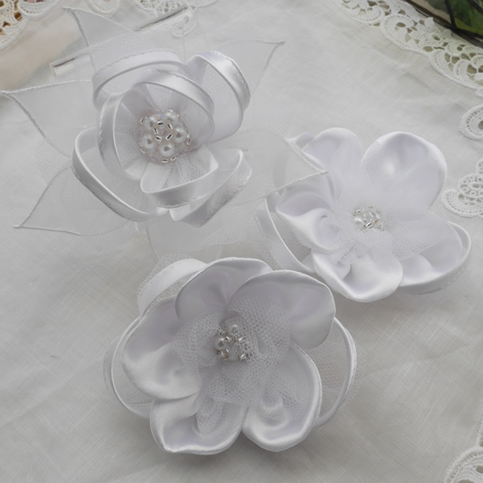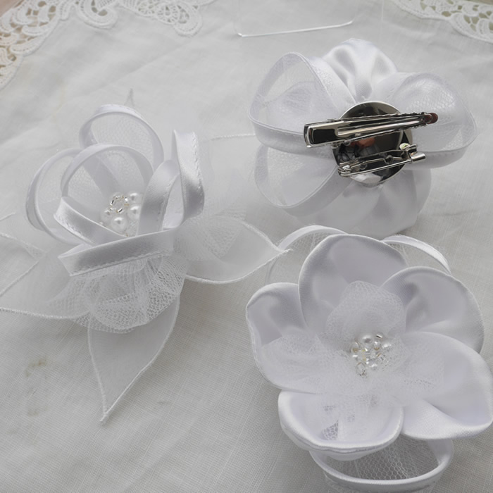 ベールとサテン地のお花で可愛くしたデザインの2種類です。