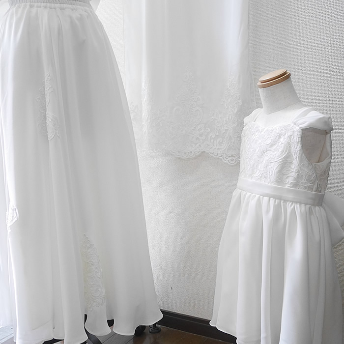 お子様ドレスのトップは元ドレスと同じようにレースをあしらいました。