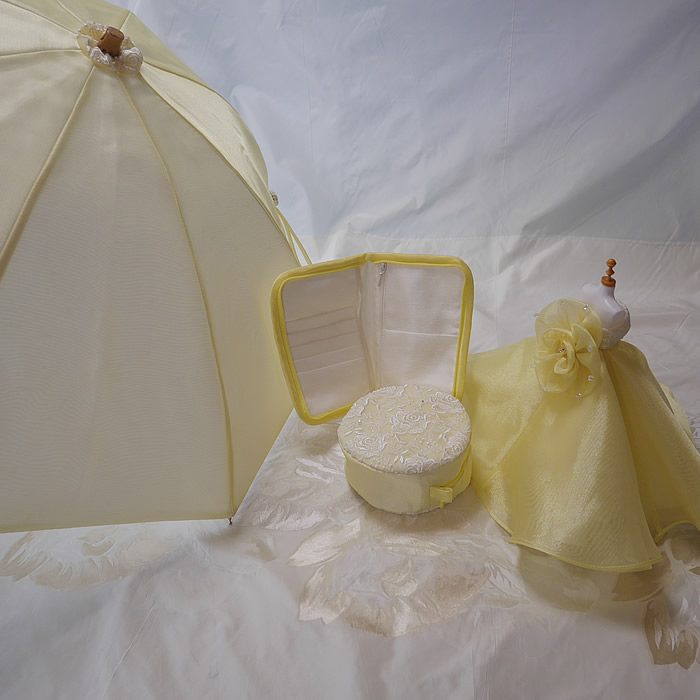 日傘は淡いイエローカラーのシンプルなデザインです。