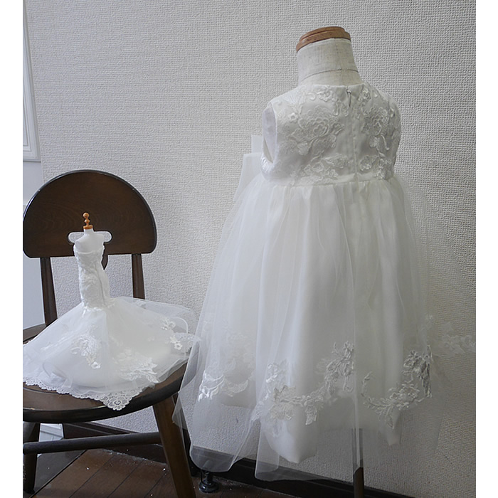 身頃等は当店が手配したサテンの上にベールのレースあしらいました。