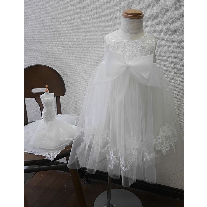 身頃等は当店が手配したサテンの上にベールのレースあしらいました。