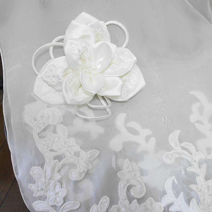 ウェディングドレスからスカートとショール、コサージュにリメイクしました。