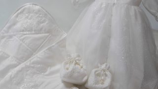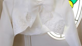 ウェディングドレスからスカートとショール、コサージュにリメイクしました。