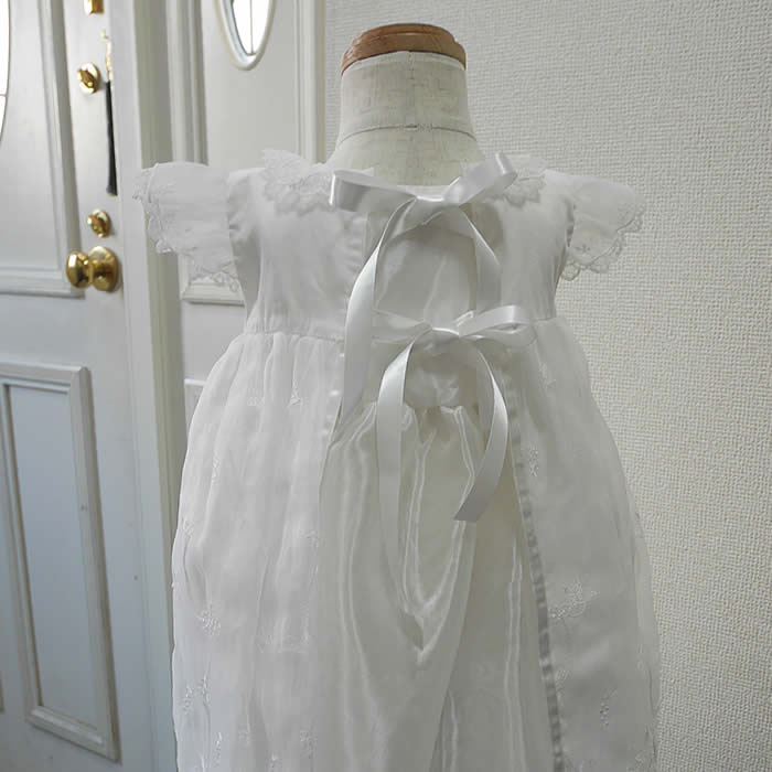 長かったスカート丈を歩ける丈にカットし、後ろはリボンで結んでサイズ調節します。