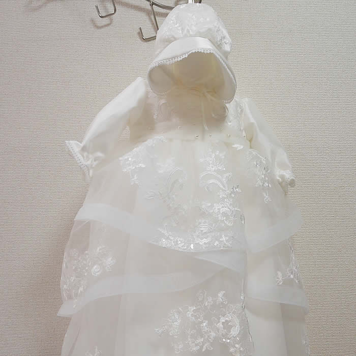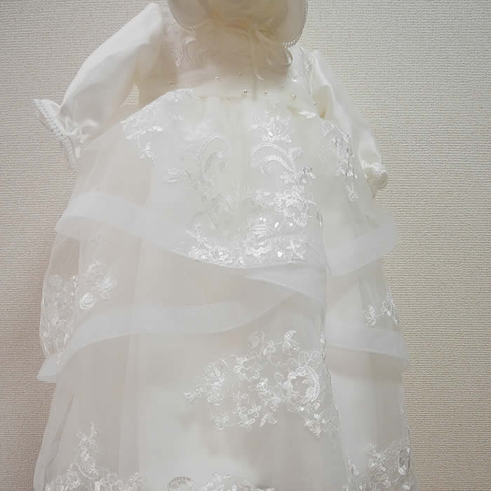 ウエストにもドレスと同じようにパールをあしらったベルトをお付けました。