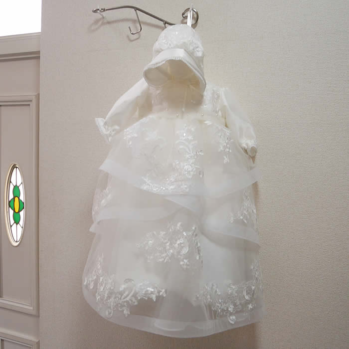 ウエストにもドレスと同じようにパールをあしらったベルトをお付けました。
