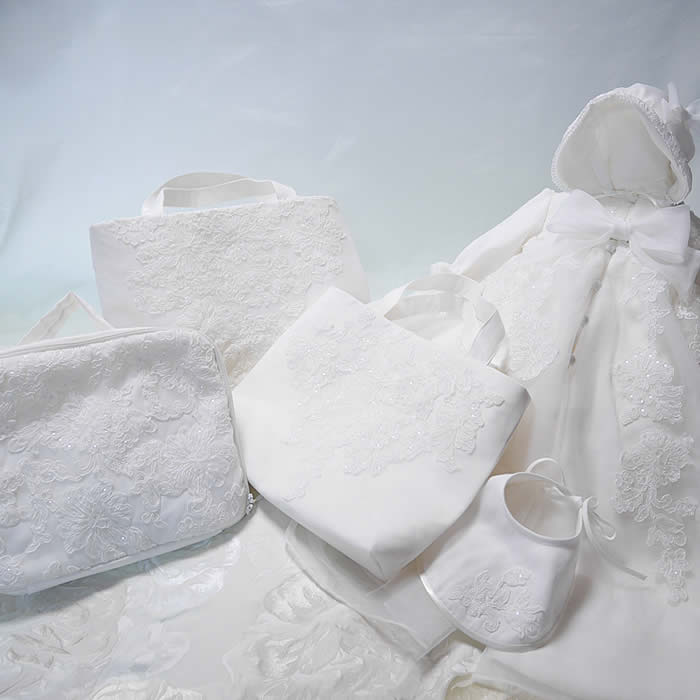 ベビードレスは元ドレスのデザインに似たイメージでレースを配置しました。