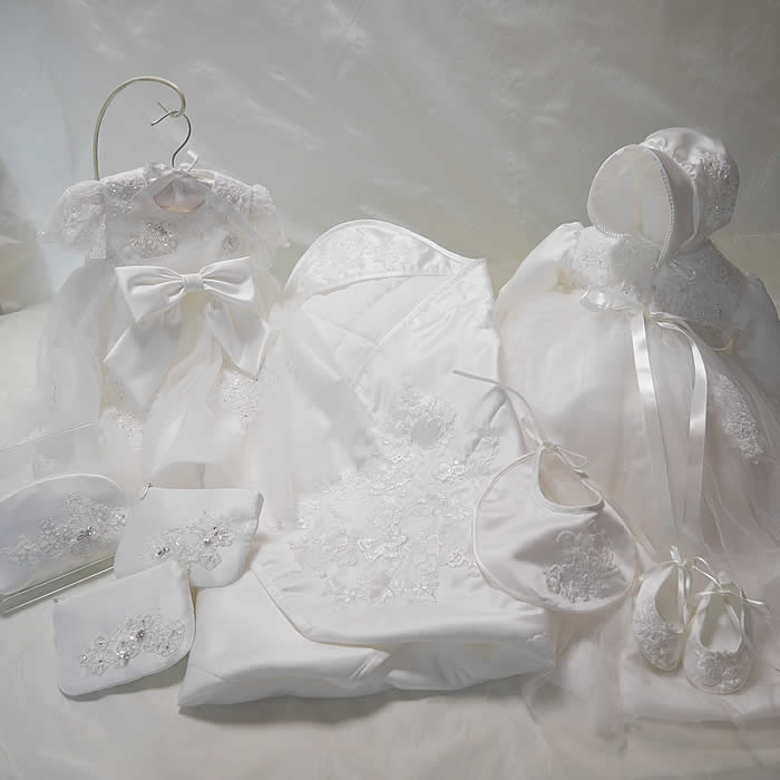 ウェディングドレスからベビードレスやおくるみ等のお宮参りセットと