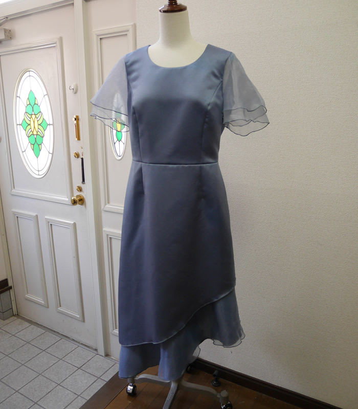 ウェディングドレスを染色してカラーのフォーマルワンピースにリメイクしました。