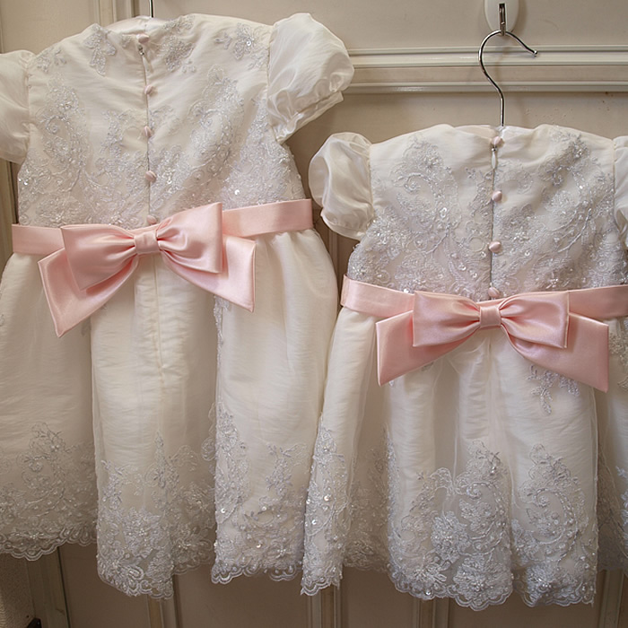 ウェディングドレスから姉妹でお揃いのキッズドレスをお作りしました。