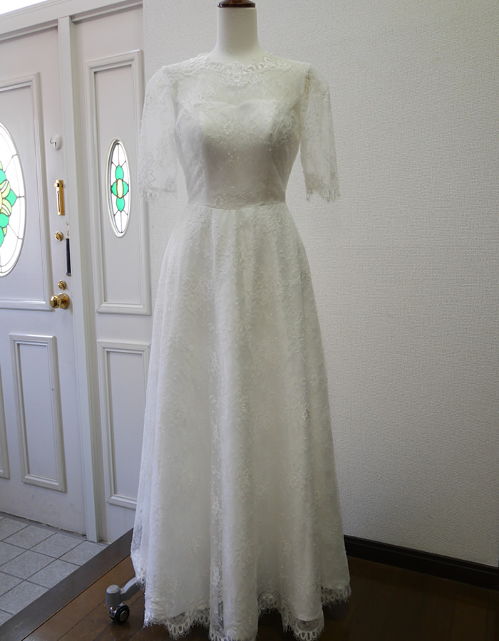 ウェディングドレスを記念撮影用の白ドレスにリメイクしました。