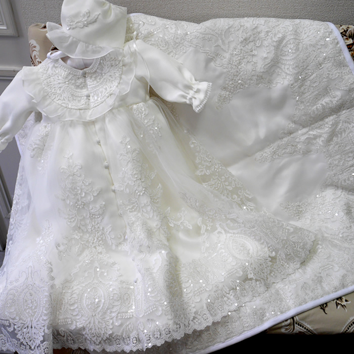 ベビードレスにもおくるみにも豪華レースをふんだんに使用した