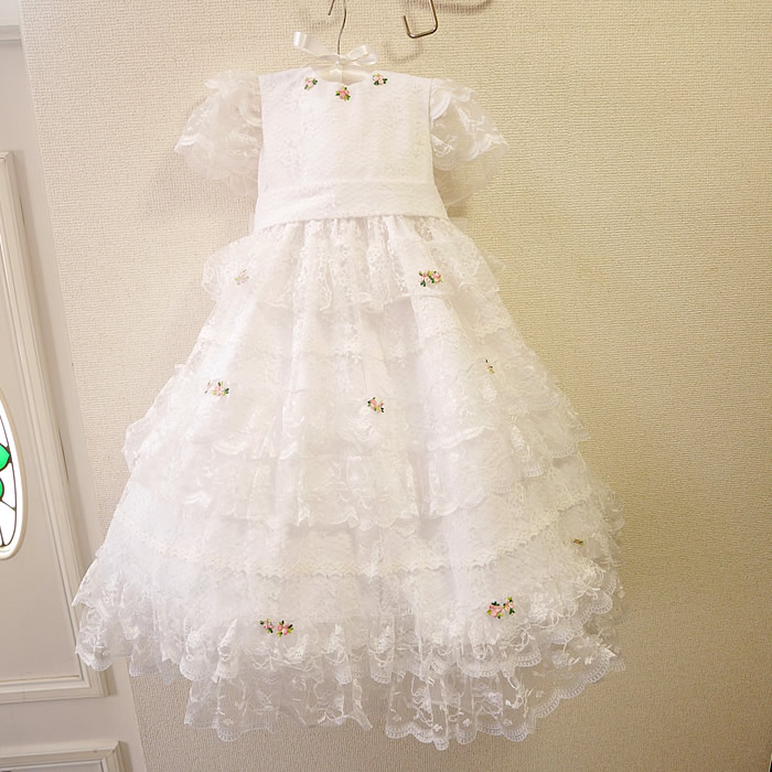 ウェディングドレスをお子様のドレスにリメイクしました。