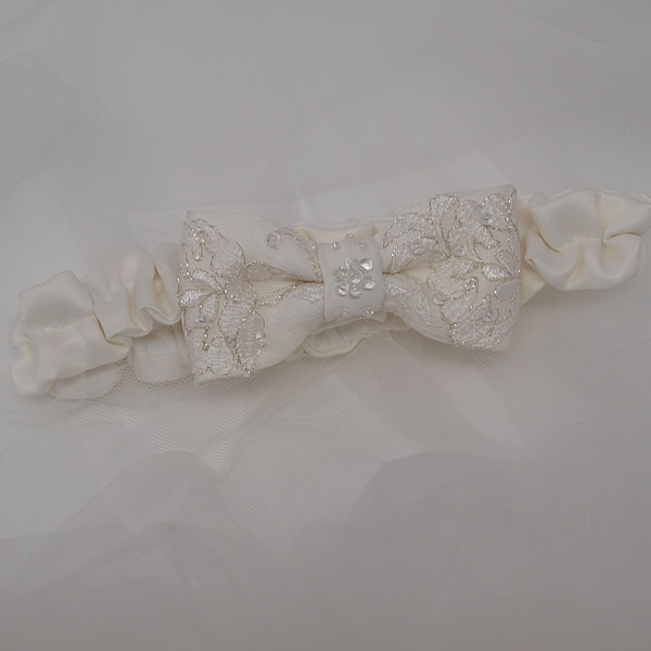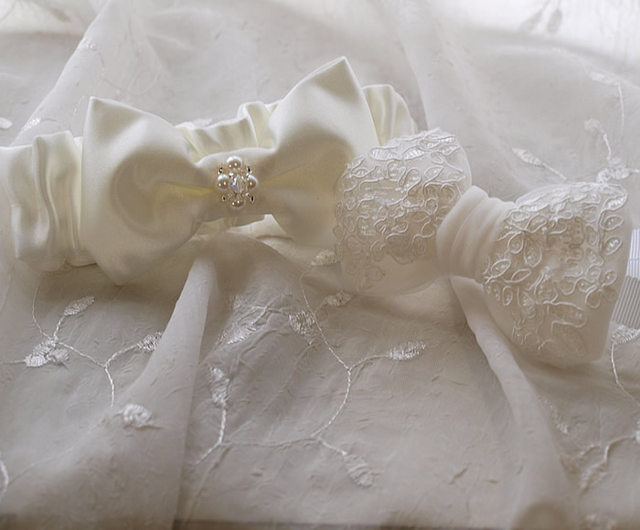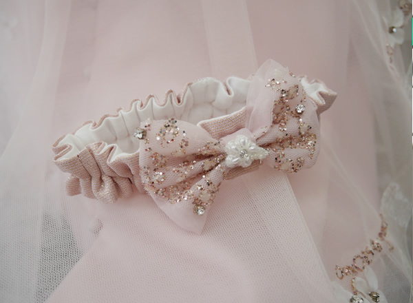 ベビーヘッドリボンの土台はドレスの生地、グローブからもお作り出来ます。