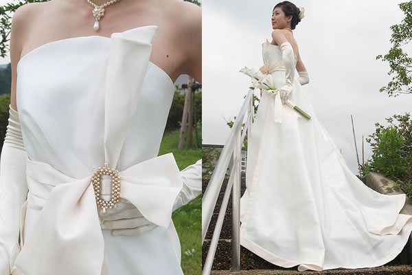 王妃のような風格をイメージさせる贅沢なウェディングドレス