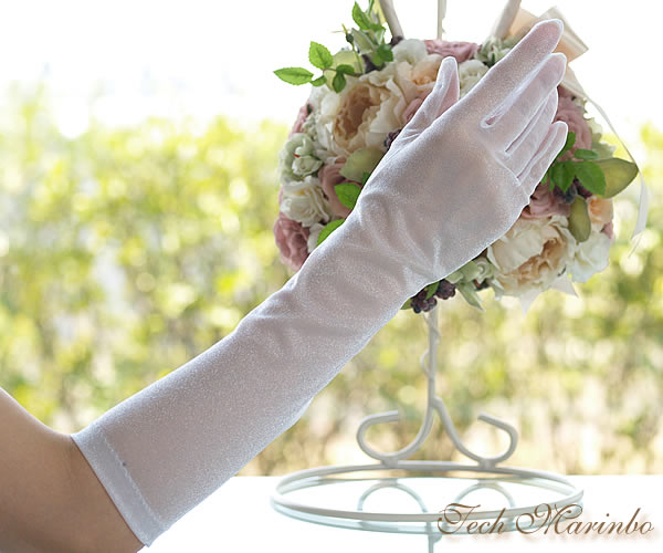ストレッチ性の高い上質なオーガンジーがほどよくフィットする肘下丈のウエディンググローブです。