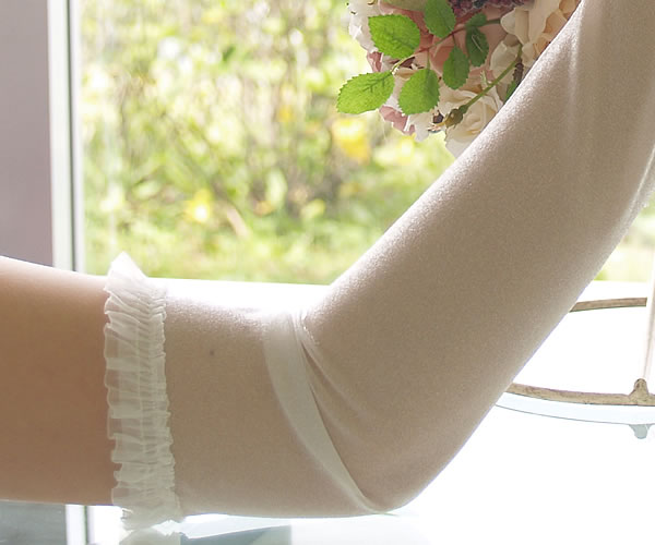 上品な光沢と透明感のあるストレッチオーガンジーが美しく腕にフィットします。