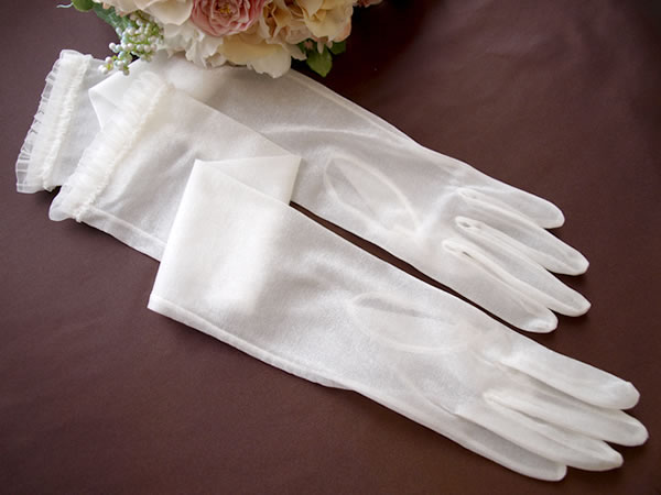 ストレッチオーガンジーグローブに愛らしいフリルレースをほどこしました。