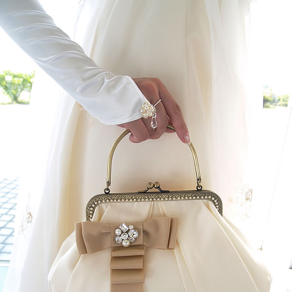 動くたびにクリスタルがキラキラと揺れる豪華なグローブです。