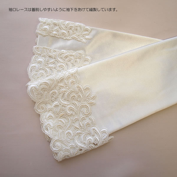 袖口レースは着脱しやすいように袖下をあけて縫製しています。