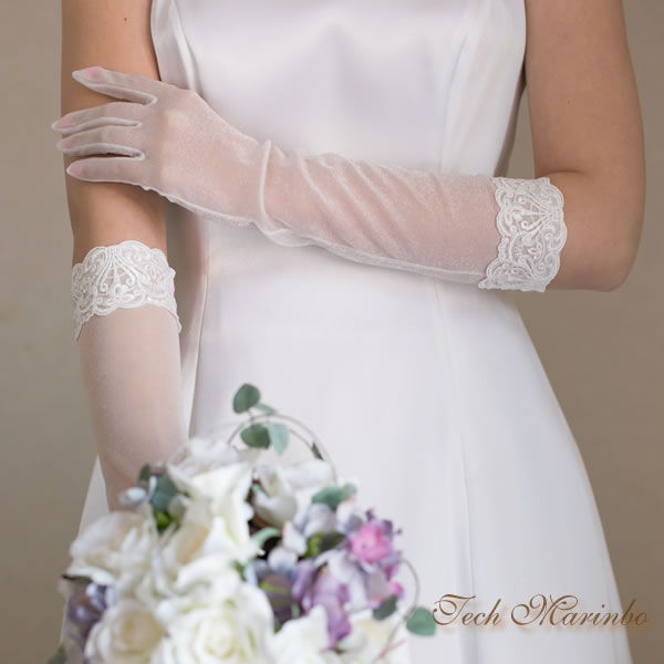オーガンジーグローブの袖口にクラシカルなレースをほどこしました。