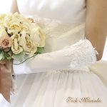 愛らしいローズ柄レースを袖口にほどこしたショートグローブ。