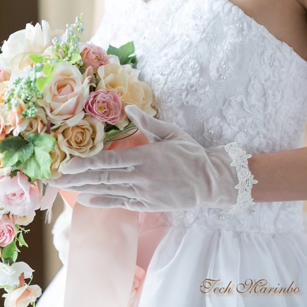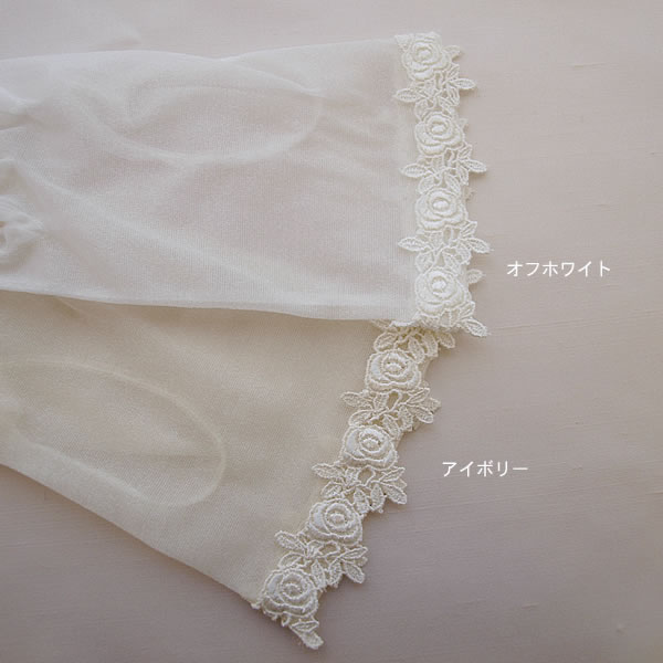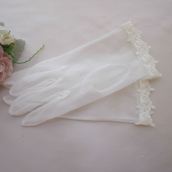愛らしいローズ柄レースを袖口にほどこしたショートグローブ。