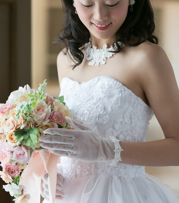 上品な光沢と透明感のあるストレッチオーガンジーが手元を美しく魅せます。