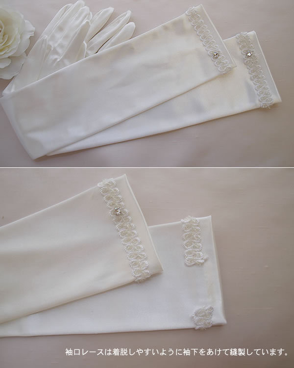 着脱しやすいようにレースは袖下をあけて縫製しています。