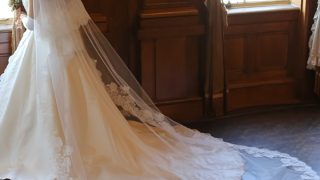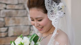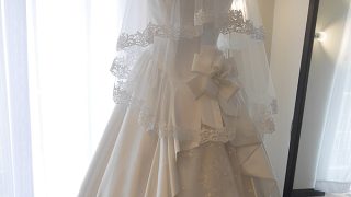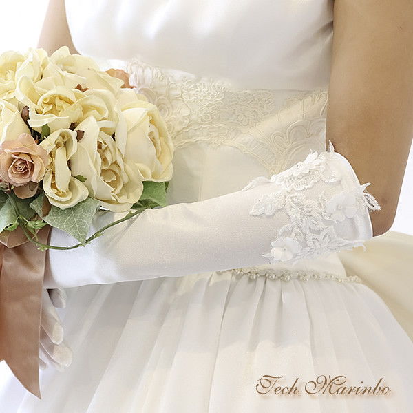 袖口に立体的なお花のモチーフをあしらった華やかなサテングローブ。