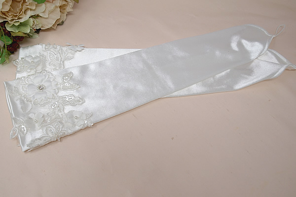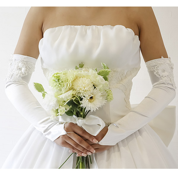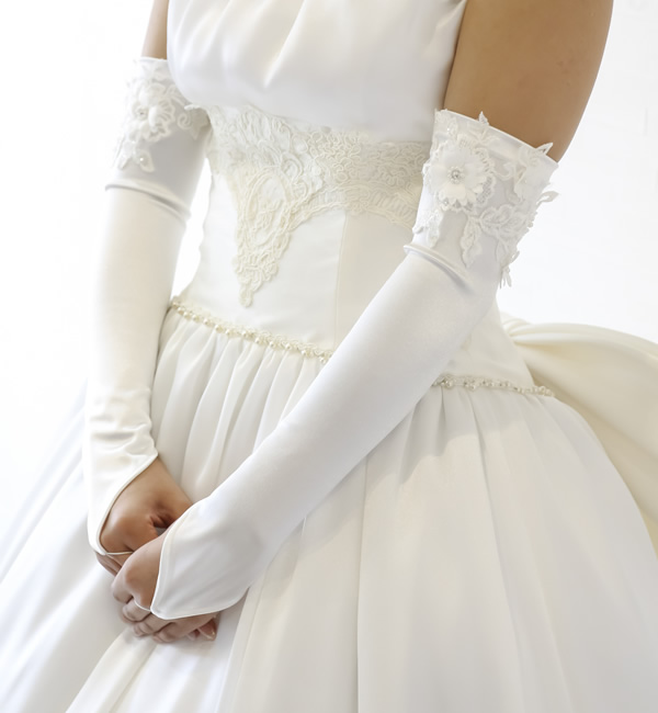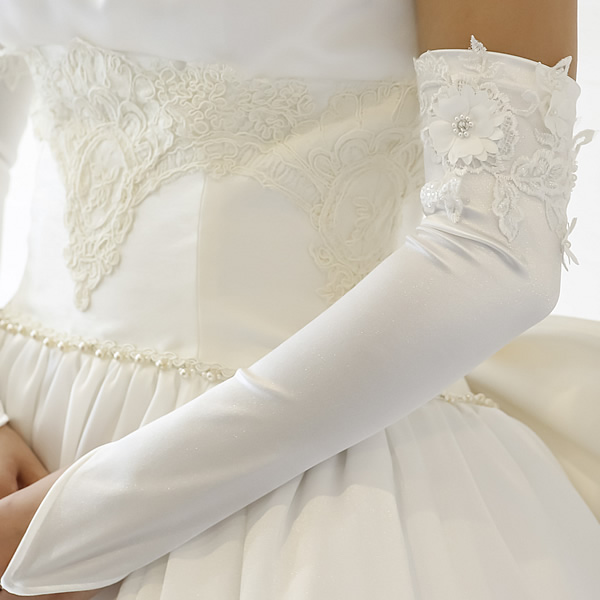 袖口に立体的なお花のモチーフをあしらった華やかなサテングローブ。