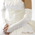 肘下丈のストレッチオーガンジーグローブにキュートなフラワーのレースをほどこしました。