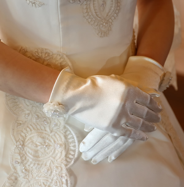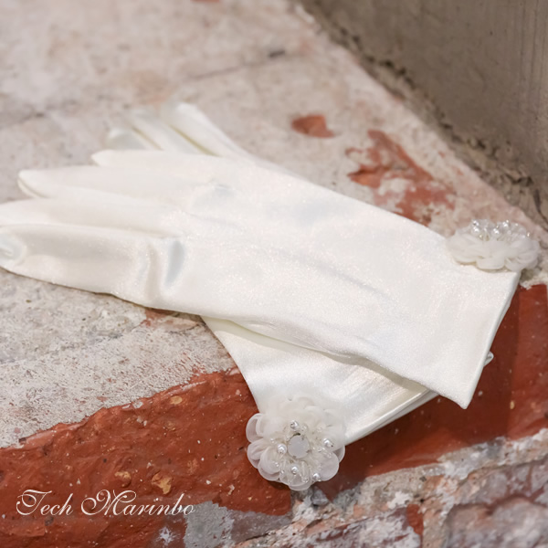 袖口に施したお花モチーフがエレガントなショートグローブ。