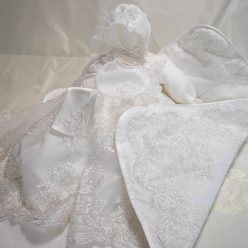 ベビー・子供・出産準備品 豪華シルバーレースのお宮参りセットとシルクのハンカチ