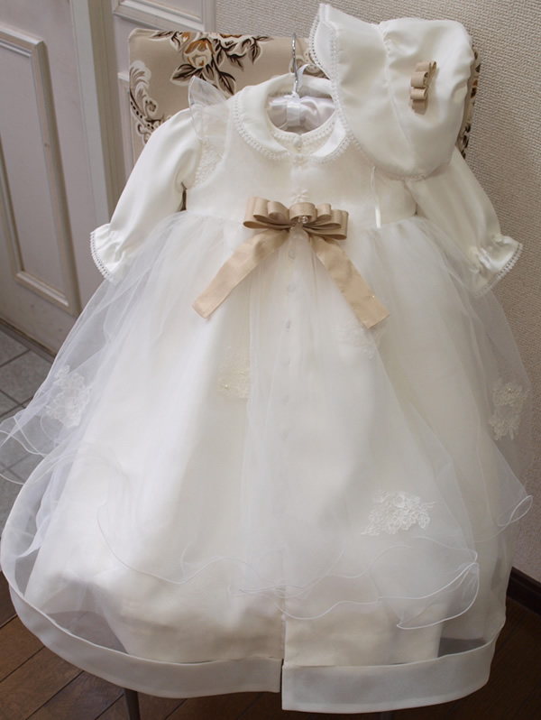 ベビー・子供・出産準備品 モカベージュのリボンがキュート♪オーバードレス&ベビードレス
