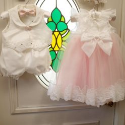 ベビー・子供・出産準備品 華やかレースのフォーマルベビードレスとスタイ