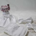 ウェディングドレスから日傘とサブバッグ、ポーチへリメイクしました。