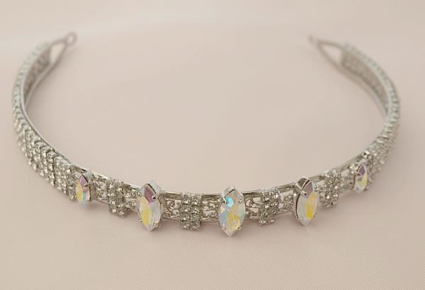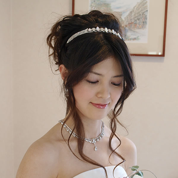 ラインストーンが敷き詰められた、細幅のスタイリッシュなデザインのティアラカチューシャです。