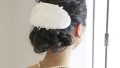 なめらかな手触りのバックサテンは広い巾のまま巻くと華やかに。