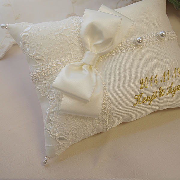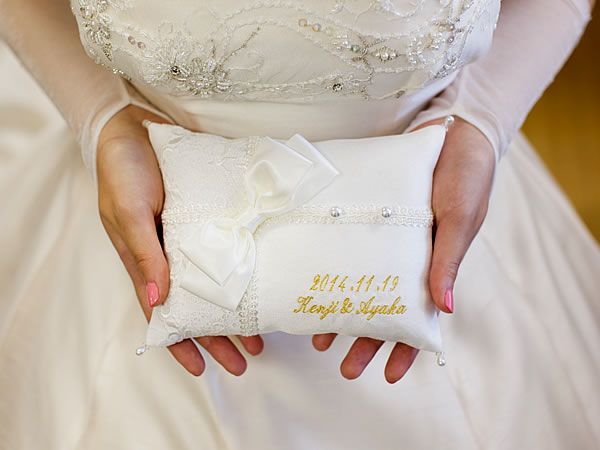 一生の思い出に残る、メモリアルリングピローが華やかさを添えます。